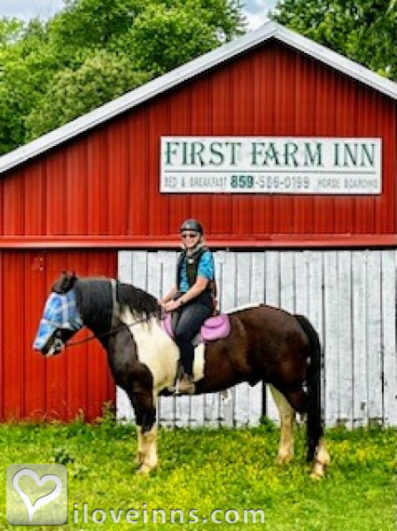 Circa 1870. Just southwest of Cincinnati (20 minutes from downtown), in Kentucky's rolling hills, is an 1870s vintage farmhouse on 21 acres. Surrounded by 200+-year-old maple trees, pastures and woods, guests can visit with and ride the friendly herd of happy, healthy horses. Both guest rooms feature queen-sized beds and private baths. Turn off the cathedral ceiling lights in the spacious Treetops room and look up at a starry night sky's actual constellations. A two-room bath, day bed and trundle make the big room comfortable for four. Downstairs, add romance to your stay by clicking on the electronic fireplace from your vintage oak bed. Watch the neighbor's cows from the tall windows. Visit in front of the family room fireplace or in the living room with the grand piano. Relax on porch rockers or in the hot tub on the deck under the stars. Fish or paddle around the pond. Hike through the woods or over the hills. Breakfasts include fresh, healthy, homemade entrees from fresh tomato pie or whole-wheat biscuits and gravy to an original Midwestern version of pasta carbonara.Publicity and Awards: Cincinnati Magazine, Edible Ohio, Kentucky Monthly, Cincinnati Monthly, Chicago Herald, Columbus Parent, Kentucky Post, Cincinnati Enquirer, Louisville Courier-Journal, Indianapolis Monthly, City Beat, The Downtowner, The Community Recorders, Arrington's Inn Traveler named "Best for Rest and Relaxation," New Holland Tractor Magazine feature, Kentucky Educational Television program "Kentucky Life" April 2010; Channel 12 One Tank Trip, Channel 6 Travel specials, NPR Brainbrew, WBOB Travel Trips in Cincinnati, Dana was in "Secretariat", N. Kentucky Chamber Small Business Success finalist (2001, 2002, 2003, 2004, 2005).Location: Country, Country and near downtown Cincinnati.